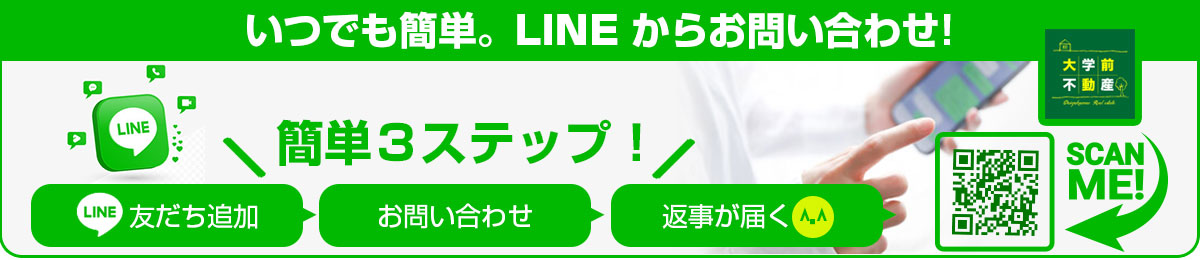 アパート・マンション・貸家など、大学周辺の賃貸物件を豊富に取り扱っています!LINEの活用方法はこちら!